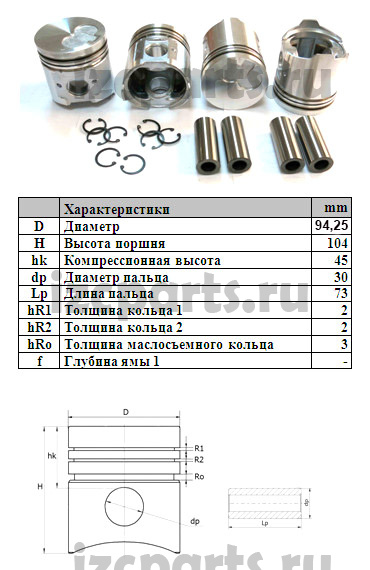 Komatsu 4d94 поршневая группа 025 h=104мм