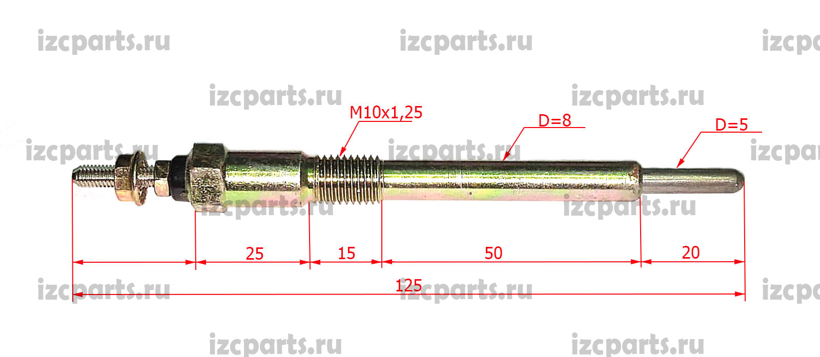 Kubota v2203/v2403 свеча накаливания l=125 Hyundai