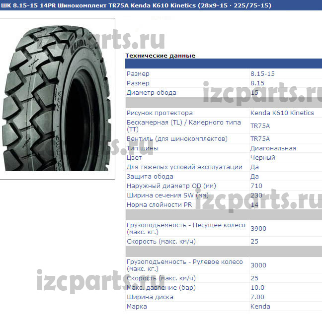 Шина 8,15х15 28х9-15 kenda k610